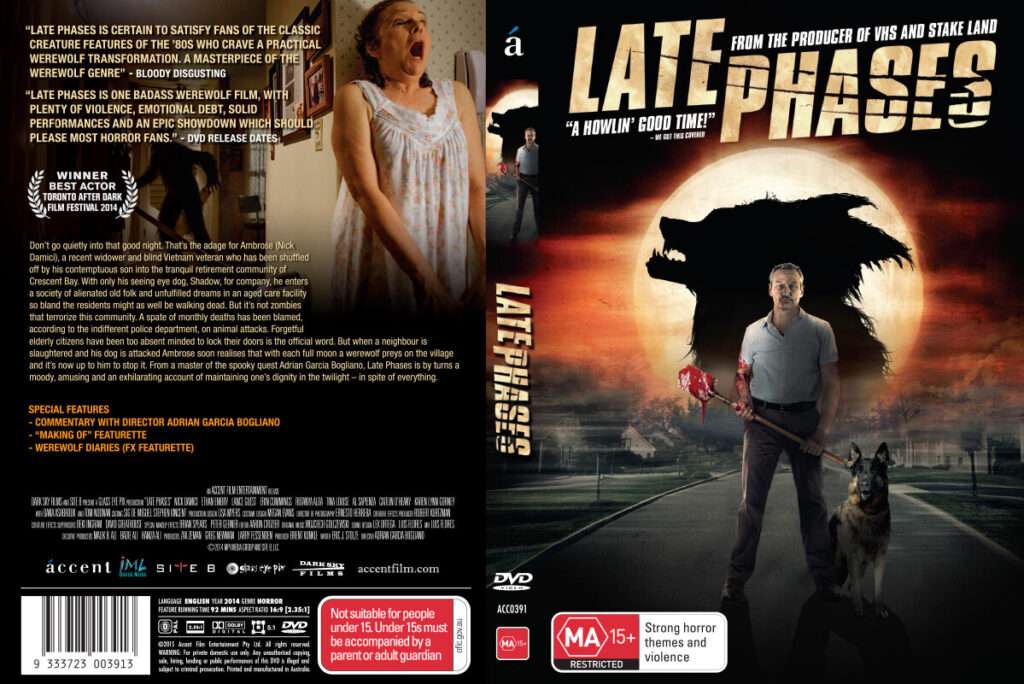 “Late Phases” ima intrigantnu priču, praktično štos/vic dosetku, o slepom dedi koji tamani vukodlake. I ne samo to. Veoma ubedljiv Nick Damici u ulozi ratnog veterana Ambrose (koji je filmu ipak znatno stariji od “mlađanog” pedesetogodišnjaka Damicia) ovde sve vreme igra ozbiljno i upravo njegova realnost dobro kompezuje neke prililično loše odrađene stvari u filmu i on je taj zahvaljujući kome “Late Phases” ne skliznu u parodiju i običnu glupost. Jeste ta ivica koja deli “Late phases” od dobrog ka očajnom teška igra na žiletu (nakon četvrtog brijanja istim) ali Amici nam sve to veoma hrabro iznosi. Bravo Amici.